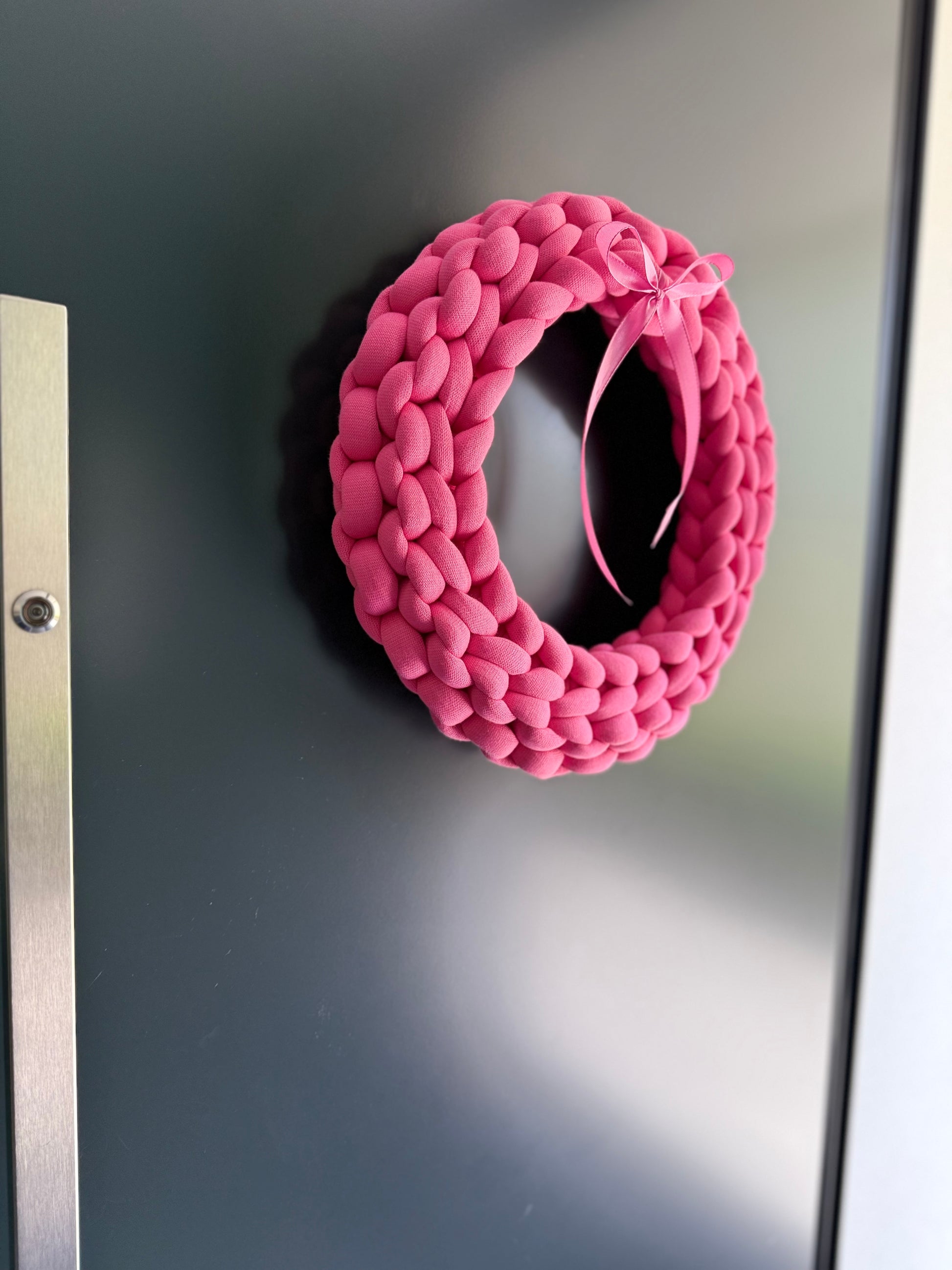 Der Türkranz ist in zwei Größen erhältlich und überzeugt durch sein dekoratives Design. Er ist erhältlich in verschiedenen Farben – perfekt, um deinem Eingangsbereich eine persönliche Note zu verleihen. Befestigen kannst Du ihn z.B. ganz einfach an einem Klebehaken.